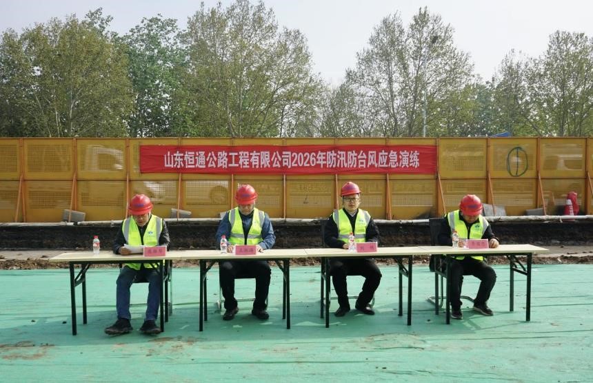 為筑牢汛期安全防線,提升極端天氣應(yīng)急處置能力,4月10日上午,恒通公司組織開展2026年度防汛防臺風應(yīng)急演練。黨支部委員、副總經(jīng)理龐振華主持活動,縣交通運輸局養(yǎng)護股股長王振海,縣交通運輸局安全監(jiān)督股股長劉皓蒞臨指導(dǎo)。